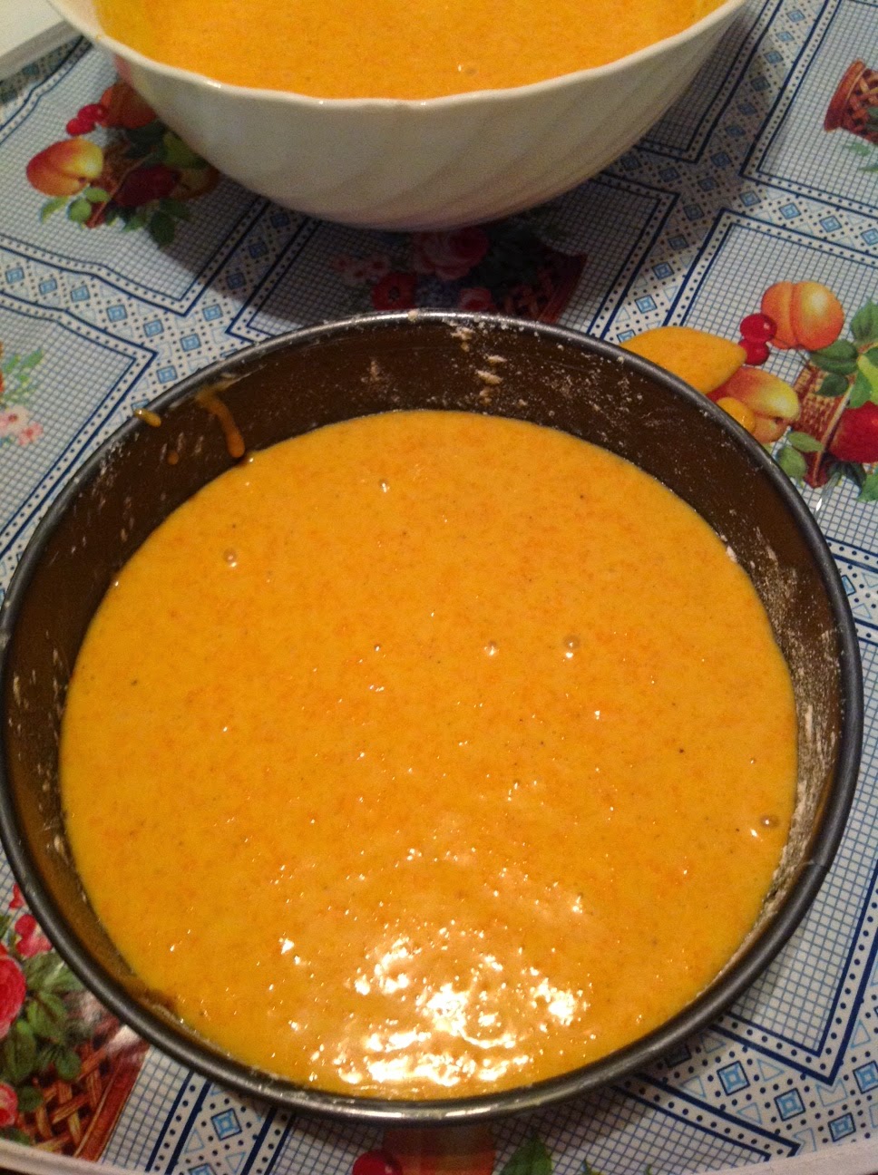 6. Tendremos preparados 2 moldes de unos 20-22 cm desmoldables , yo les cubro la base con papel de horno , y las paredes con un poco de mantequilla, así no hay problema al desmoldar.