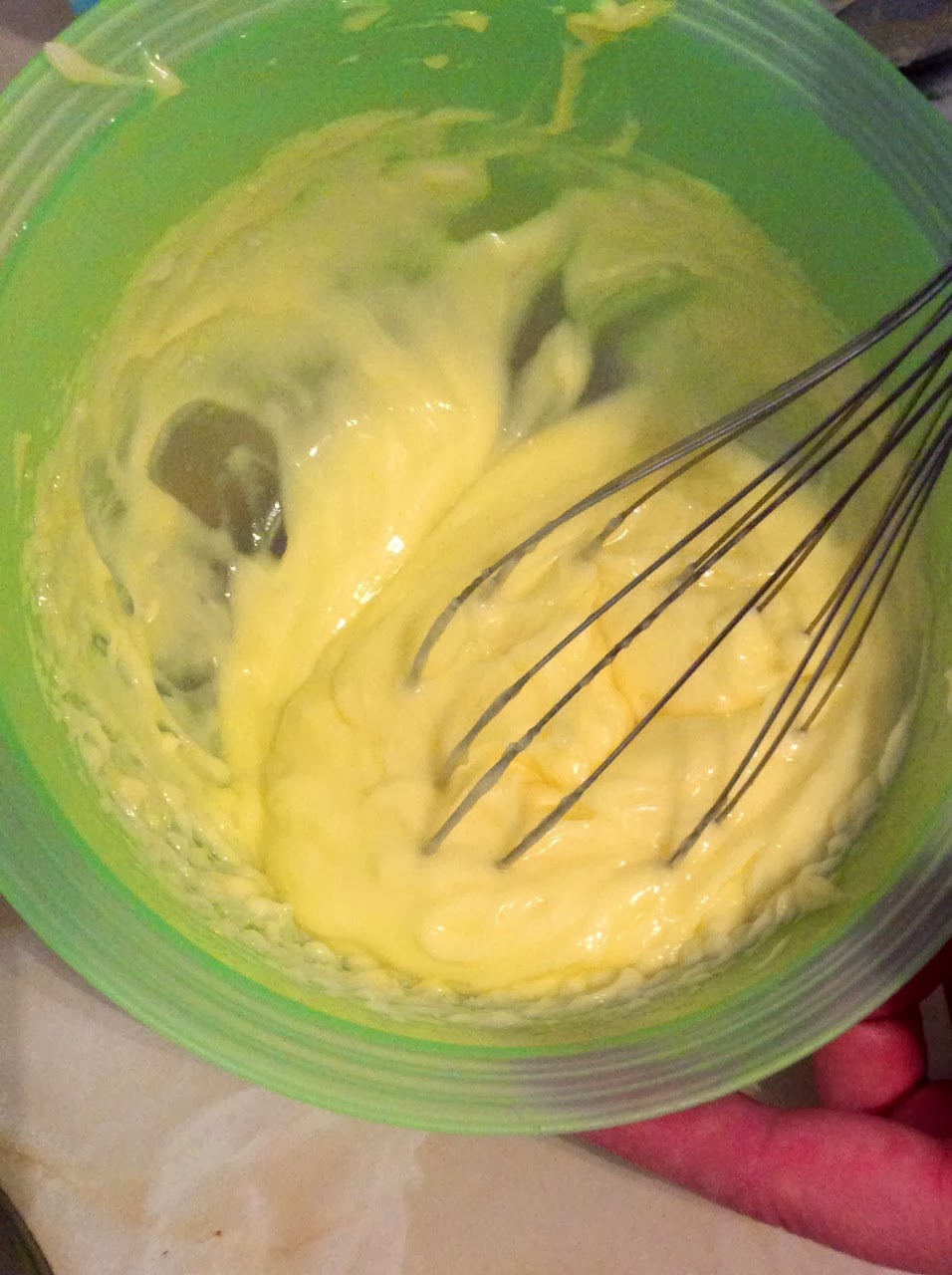Una vez este todo bien mezclado, separamos la mezcla en dos boles diferentes para poner el colorante ( yo lo hice de color rosa y azul), mezclamos todo bien hasta que tengamos el color deseado.