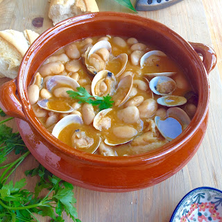 Ahora ,que por fin, parece que ha llegado el fresquito , aunque no el acostumbrado para esta época del año , van apeteciendo los guisos de cuchara , esos grandes protagonistas en casi todos los hogares y que tanto nos gustan . Hoy vamos a hacer unos apetecibles judiones con almejas y bacalao , son tan sencillos como exquisitos , no tienen ninguna dificultad y sin embargo , son esos guisos con fundamento , que gustan a todos . Los judiones , los ponemos en remojo en agua fría con antelación , yo los dejo remojar dos noches antes de guisarlos para que se hidraten bien y quede la piel mas blandita, depende si son del año o no , pero como no lo sabemos , los dejo mas tiempo y me aseguro que estén en su punto . Cuando los pongamos a hervir y arranque el primer hervor , les tiramos ese agua y volvemos a ponerles el agua fría para dejarlos ya cocer en ella definitivamente . Así se dice que los » asustamos » y quedan mas blandos y melosos . Y dicho esto , nos vamos a los fogones para poder disfrutar de este delicioso manjar .