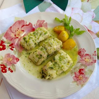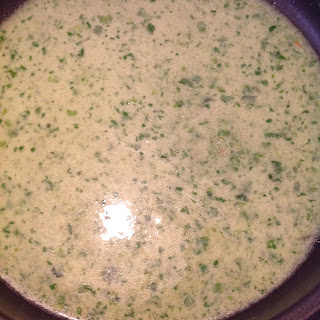 Veremos qué la salsa espesa y coge color verde . Retiramos del fuego y servimos . Yo lo acompañe de unas patatitas y a disfrutar !!