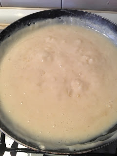 – 4 En una sartén al fuego , ponemos la mantequilla , cuando este derretida , ponemos la harina y la vamos removiendo muy bien que nos vaya tomando un poco de color , para que luego no sepa a cruda . Todo este proceso se realiza a fuego lento.Ahora vamos agregando el caldo de cocer los mejillones , sin dejar de remover y a continuación hacemos lo mismo con la leche , la nuez moscada y la pimienta . Seguimos removiendo hasta que la bechamel espese bien , probamos de sal , pues el caldo de la cocción de los mejillones suele estar sabroso .Si necesita sal la ponemos.