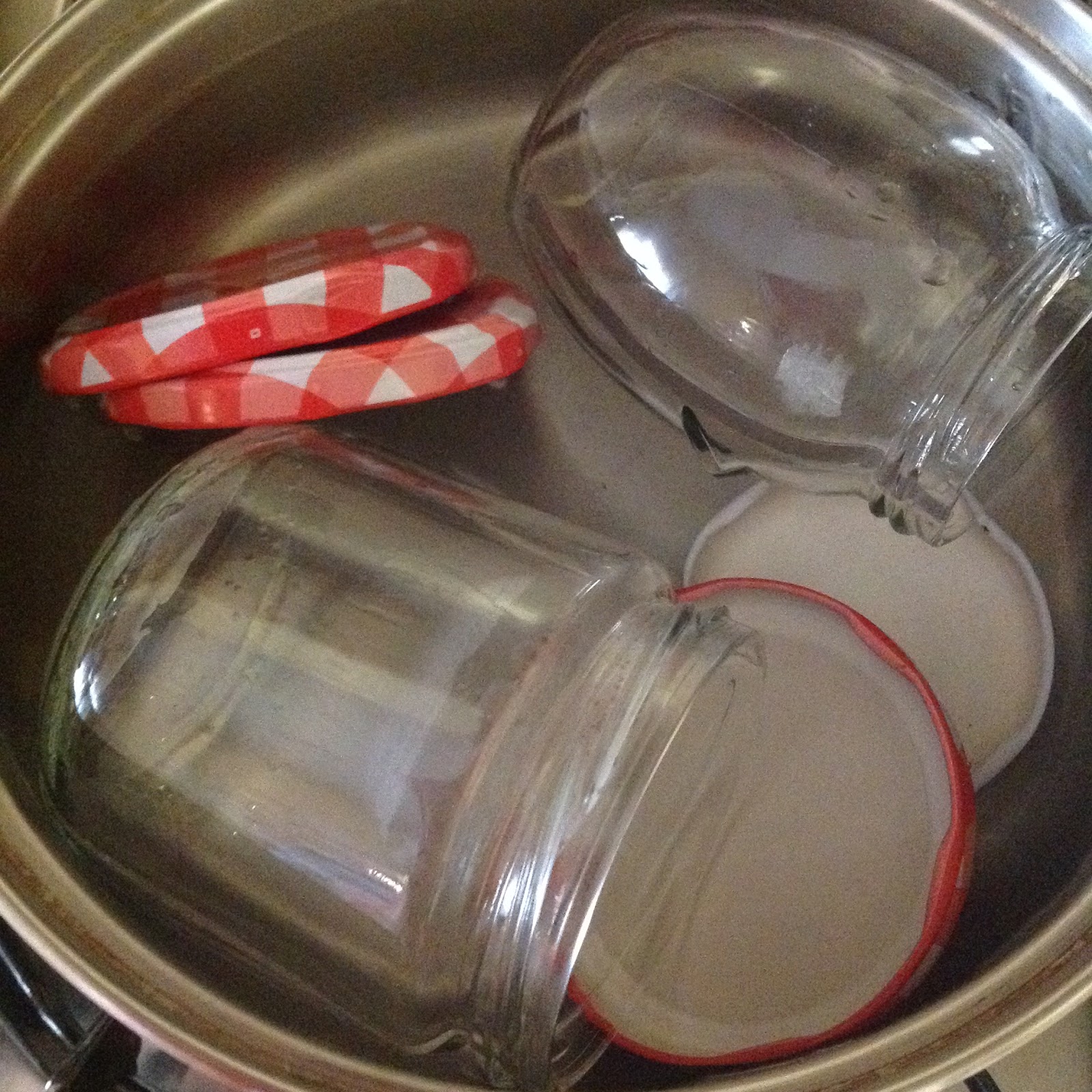 – 1 Hervimos los botes con agua durante unos 10 m , bien cubiertos por el agua. Cuando estén , los sacamos del agua y los ponemos a escurrir.
