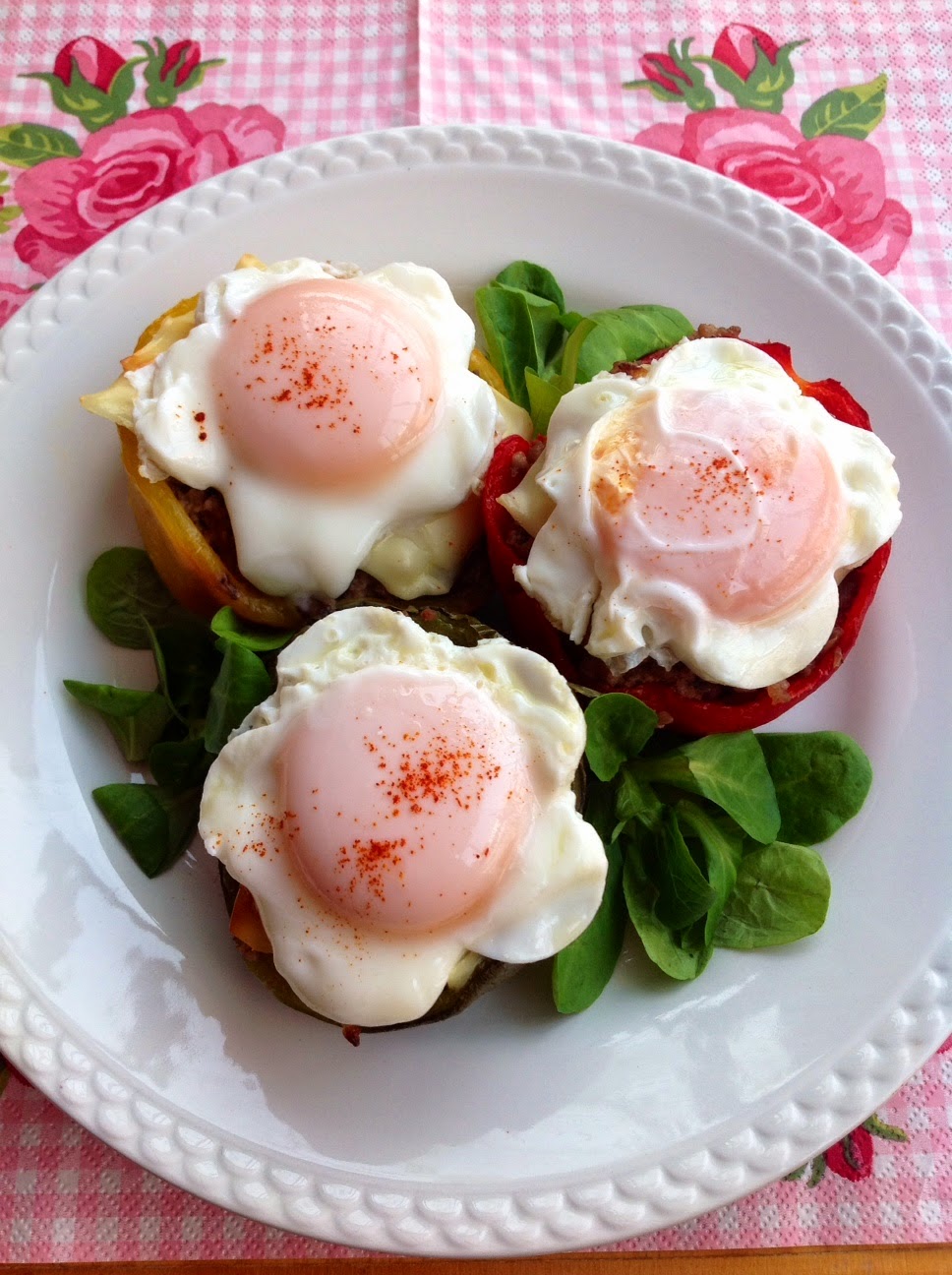 Pasados estos días de Cuaresma os propongo una receta de carne y pimientos; ya que va apeteciendo tomar algo de carne despues de tenerla un poco aparcada en nuestra dieta. Los pimientos rellenos son un clásico en nuestra cocina, muy fáciles de elaborar y como estan todo el año en nuestros mercados, los tenemos a nuestro alcance para cualquier ocasión. El huevo es un toque personal que les hace mas vistosos, ¡que aproveche amigos!