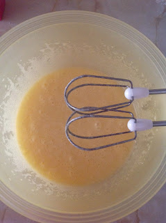 – 2 En un bol batimos los huevos , el aceite y el azúcar mezclando bien .