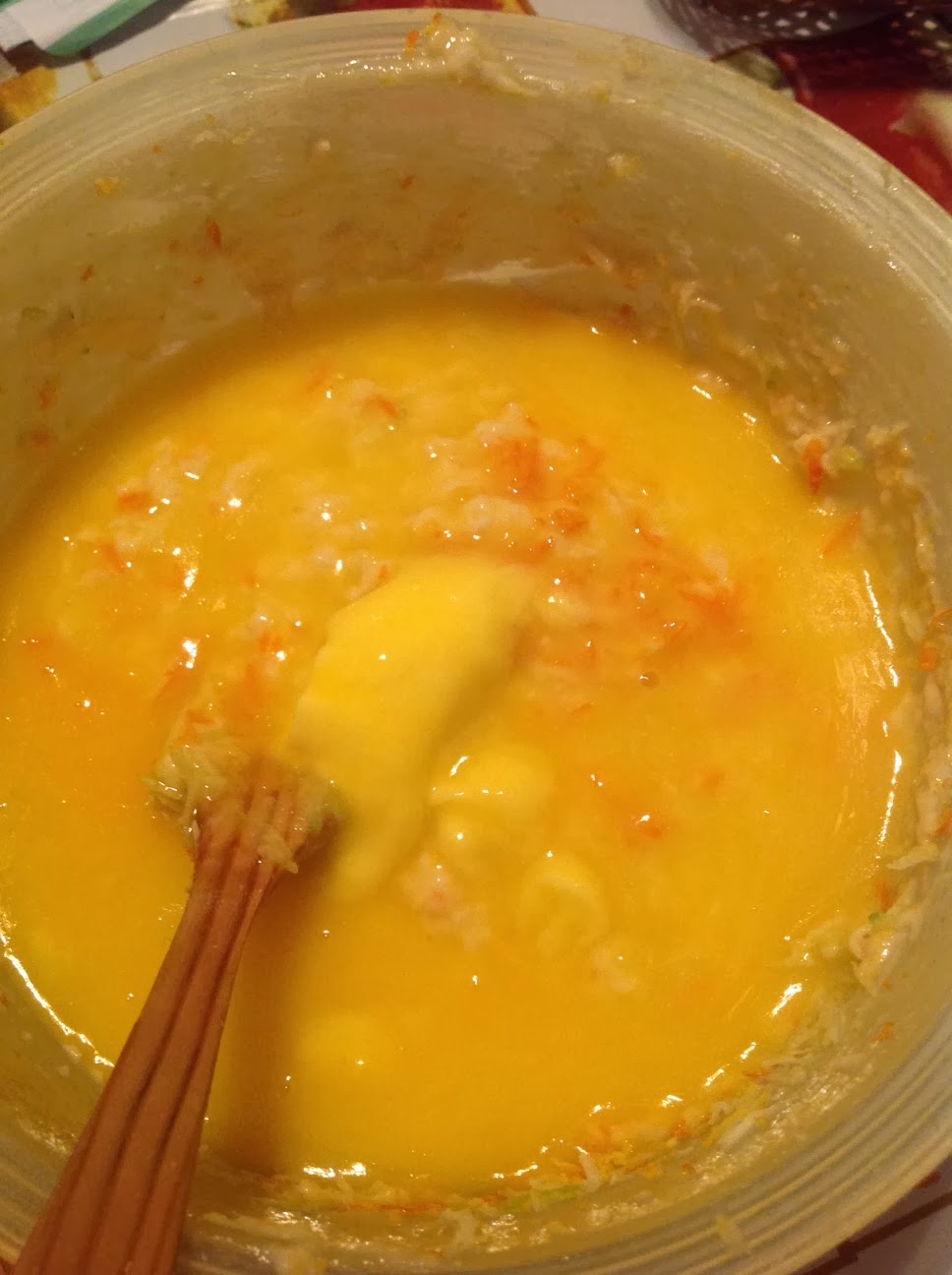 3. Incorporamos la ralladura de el limón, la ralladura de la naranja y el agua de azahar, volvemos a mezclar bien.