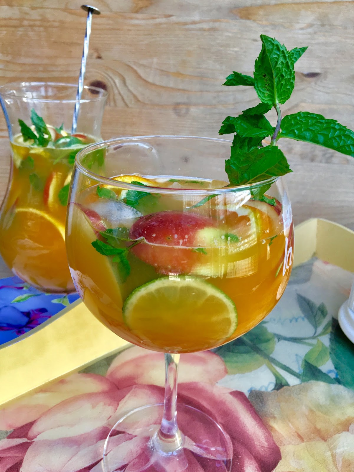 Un buen remedio para combatir el calor es tener algo fresquito a mano ; propongo una sangría con vino blanco y frutas que esta de miedo . Refrescante a tope !!